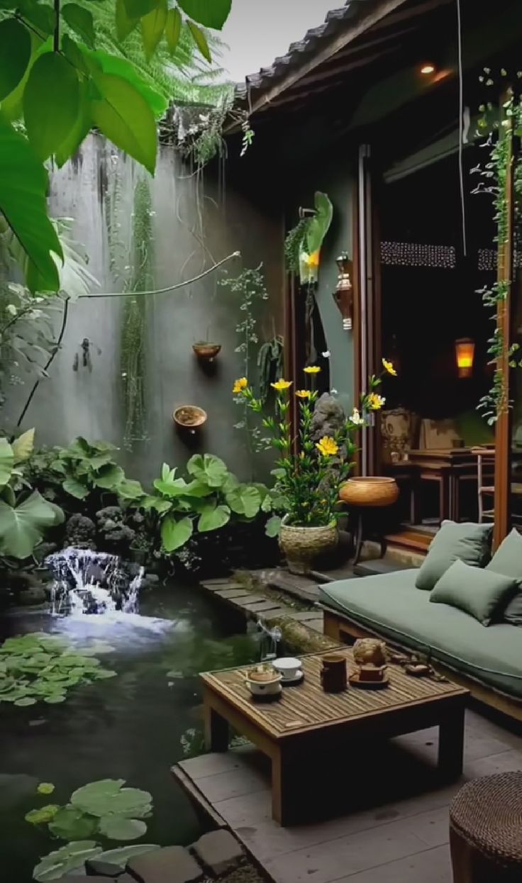 Adding water features to create a serene and relaxing atmosphere in your garden with fountains, ponds, and waterfalls.